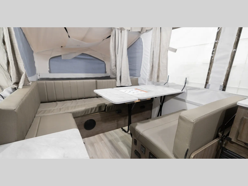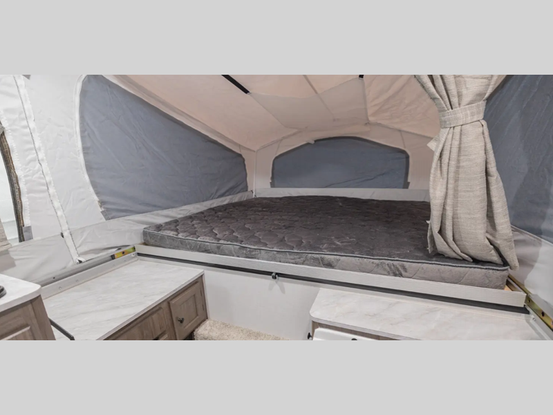 Sleeps 5 Slides 1 Length 21 ft 6 in Ext Width 7 ft Ext Height 6 ft 2 in Hitch Weight 294 lbs Dry Weight 2952 lbs Cargo Capacity 842 lbs Fresh Water Capacity 20 gals Tire Size 15" Furnace BTU 20000 btu Available Beds Two Tent End Beds Refrigerator Type 12V Refrigerator Size 1.7 cu ft Cooktop Burners 3 Number of Awnings 1 LP Tank Capacity 20 lbs Awning Info 10' 6" with LED Lights Axle Count 1 Number of LP Tanks 2 Electrical Service 30 amp Open Length 26 ft 5 in Similar Floorplans