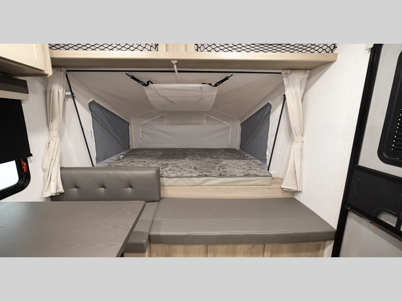 Sleeps 9 Slides 1 Length 24 ft 10 in Ext Width 8 ft Ext Height 10 ft 6 in Hitch Weight 652 lbs Dry Weight 5111 lbs Cargo Capacity 1541 lbs Fresh Water Capacity 54 gals Grey Water Capacity 29 gals Black Water Capacity 29 gals Furnace BTU 35000 btu Available Beds Three Queen Tent End Refrigerator Type 12V Cooktop Burners 3 Number of Awnings 1 Water Heater Type Gas/Electric Quick Recovery AC BTU 15000 btu TV Info LR 12V Smart Entertainment TV Awning Info 17' Power w/Adjustable Rain Dump and LED Lights Axle Count 2 Shower Type Radius Similar Floorplans