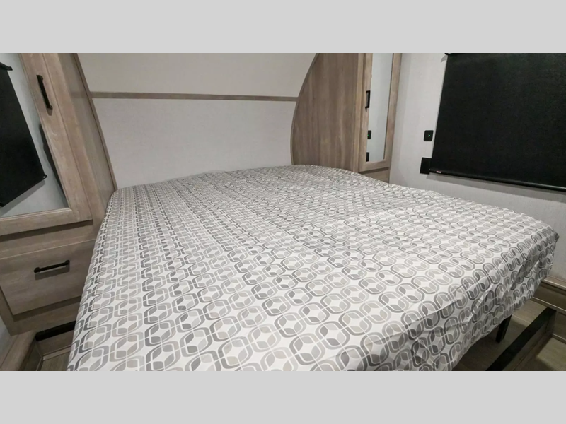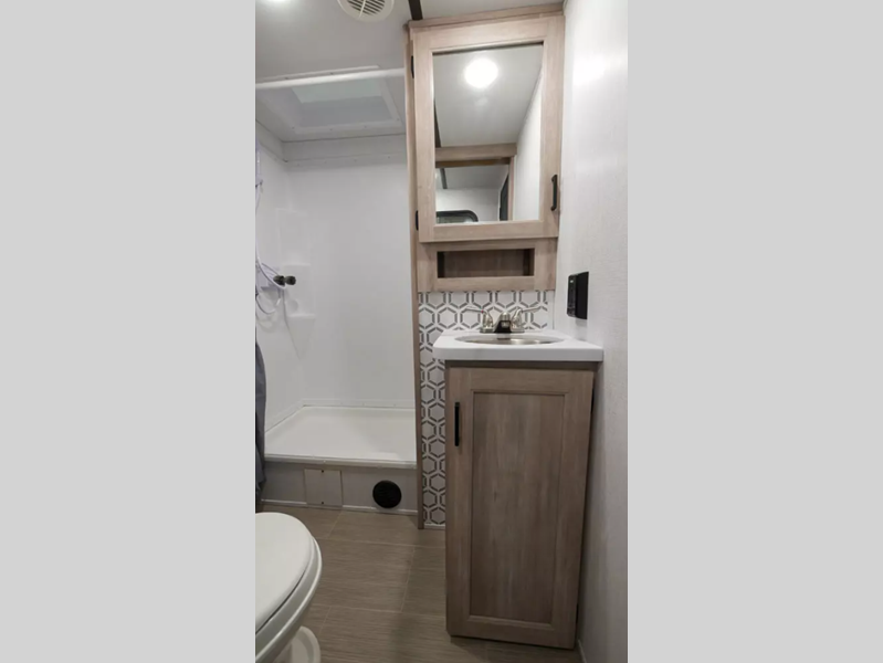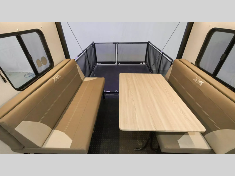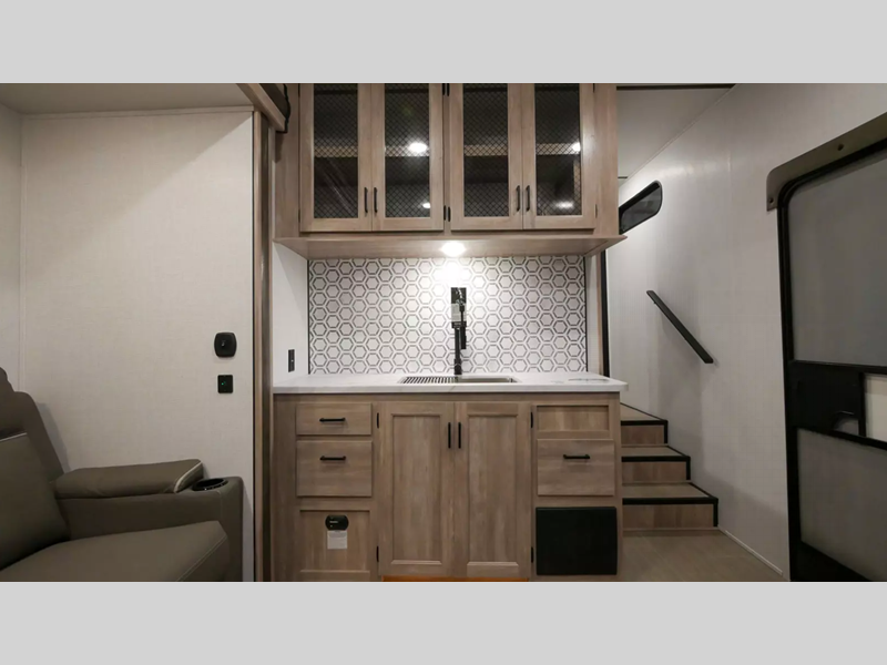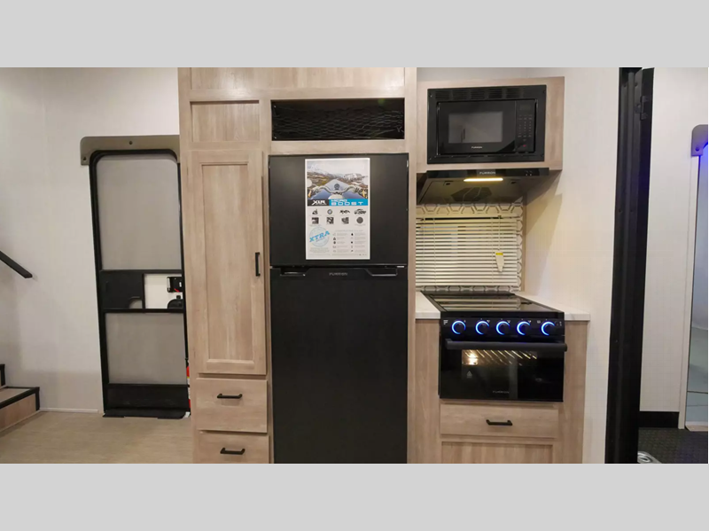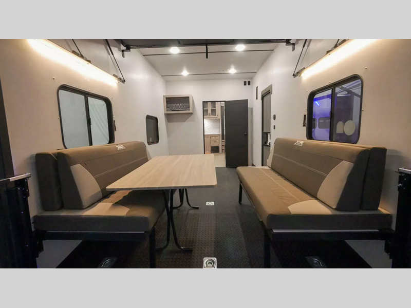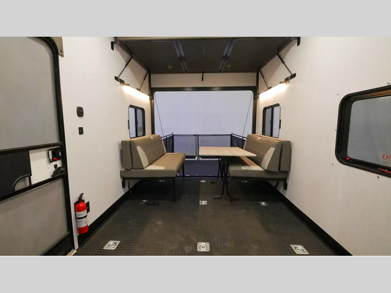 There is fiberglass flooring insulation that will withstand your many adventures plus a rear beaver tail frame for easy unloading and an external fuel cell with a pump. You will feel right at home with decorative glass cabinet doors and LED lights, and there is a tankless water heater to provide endless hot showers after trail riding. The Alumifoil insulated enclosed underbelly will help extend your camping season, and each model is back up camera ready if you want to make parking easier than ever.