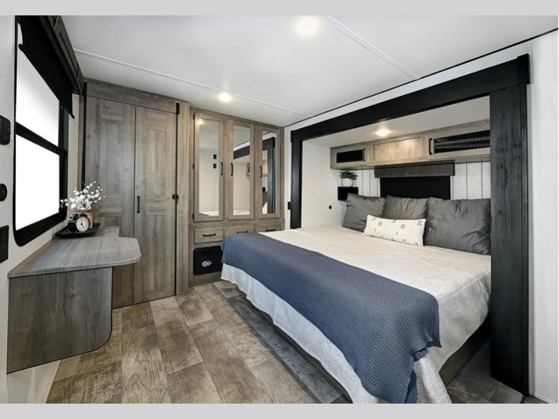 Sleeps 4 Length 32 ft 2 in Ext Width 8 ft Ext Height 13 ft 5 in Hitch Weight 985 lbs GVWR 9919 lbs Dry Weight 8119 lbs Cargo Capacity 1800 lbs Fresh Water Capacity 43 gals Grey Water Capacity 35 gals Black Water Capacity 35 gals Available Beds King Refrigerator Type Residential Cooktop Burners 4 Shower Size 34" x 40" Number of Awnings 1 LP Tank Capacity 30 lbs Water Heater Type Tankless TV Info LR 50" TV Awning Info 15' Washer/Dryer Available Yes Number of LP Tanks 2 Shower Type Standard Electrical Service 50 amp Similar Floorplans